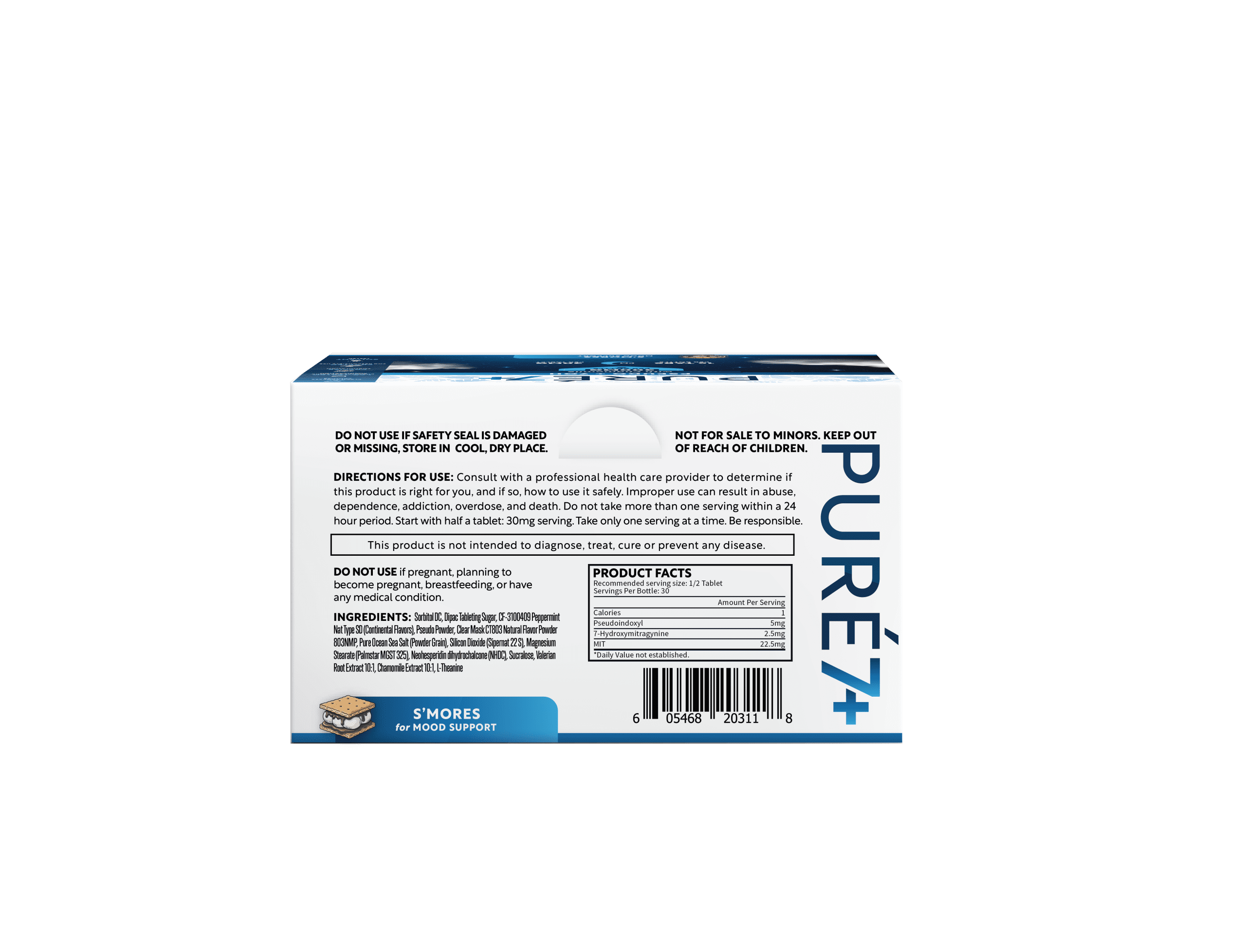 Pure 7+ PM Pseudo Blend – 60mg | 15 Count Bottle Display – 12 Bottles / Display